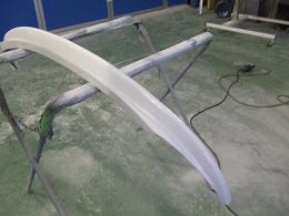 FRPが硬化したら、余分なところ削り、バンパーに仮組みをしながらラインをあわせて、その上からパテで形を整えていきます。